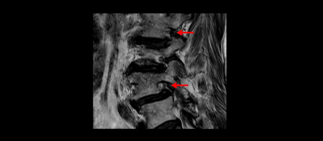 먼저 이분 MRI를 보고 자세히 설명해 드린 후 어떻게 허리 여러 마디에서 협착과 전방전위로 신경이 심하게 눌려 보이는 환자가 수술 없이 좋아질 수 있는지, 또 치료는 어떻게 하는지 설명해 드리겠습니다.