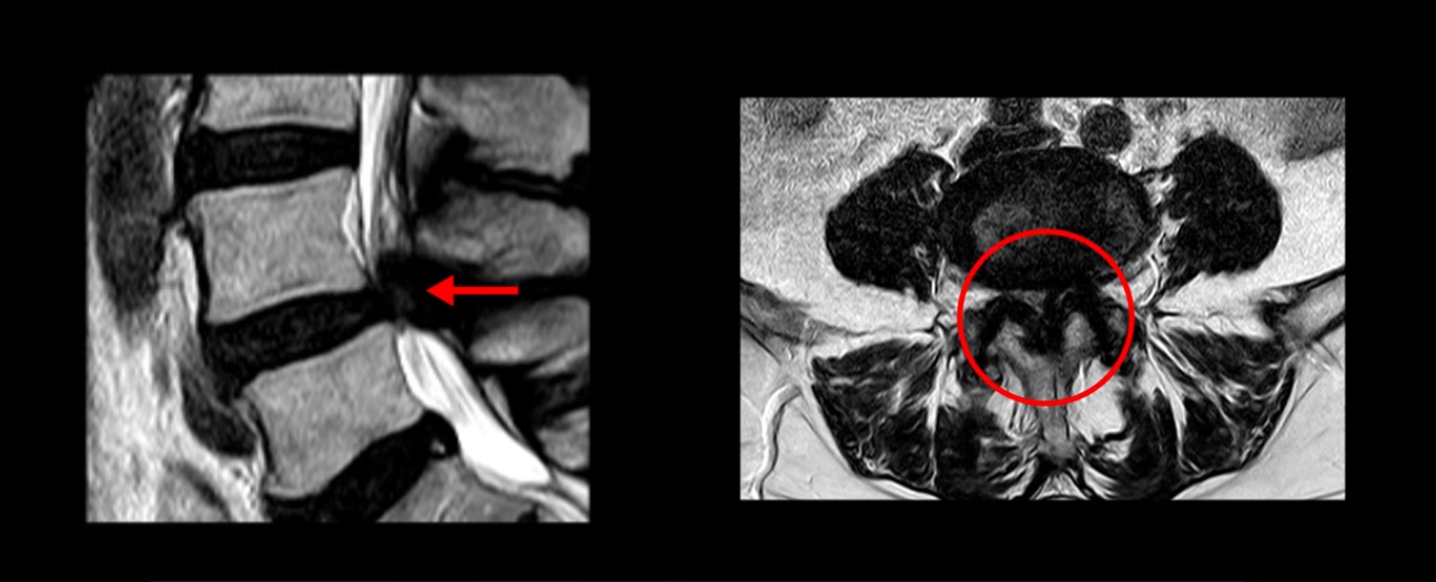 앞서 보신 MRI의 환자분은 무증상 협착 상태로 지내시다가 발병 전 장거리 해외여행과 장시간 차량 이동이 허리에 부담이 되다 보니까 허리 근육이 뭉치고 불균형하게 뒤틀리면서 기능이 떨어지니까 신경 눌림 증상이 어느 날 심하게 발생했습니다. 협착이 심하기 때문에 일단 신경학적 증상이 발생하니까 증상의 정도는 매우 심했습니다. 양쪽 다리가 발바닥까지 저리고 아프고 몇 분만 걸으면 신발이 벗겨져도 모를 정도로 마비감까지 생깁니다. 이럴 때 MRI를 찍어보면 신경 구멍이 너무 좁아져 있으니까 깜짝 놀라고 수술로 신경 구멍을 넓혀야만 된다고 생각하실 수 있는 겁니다.